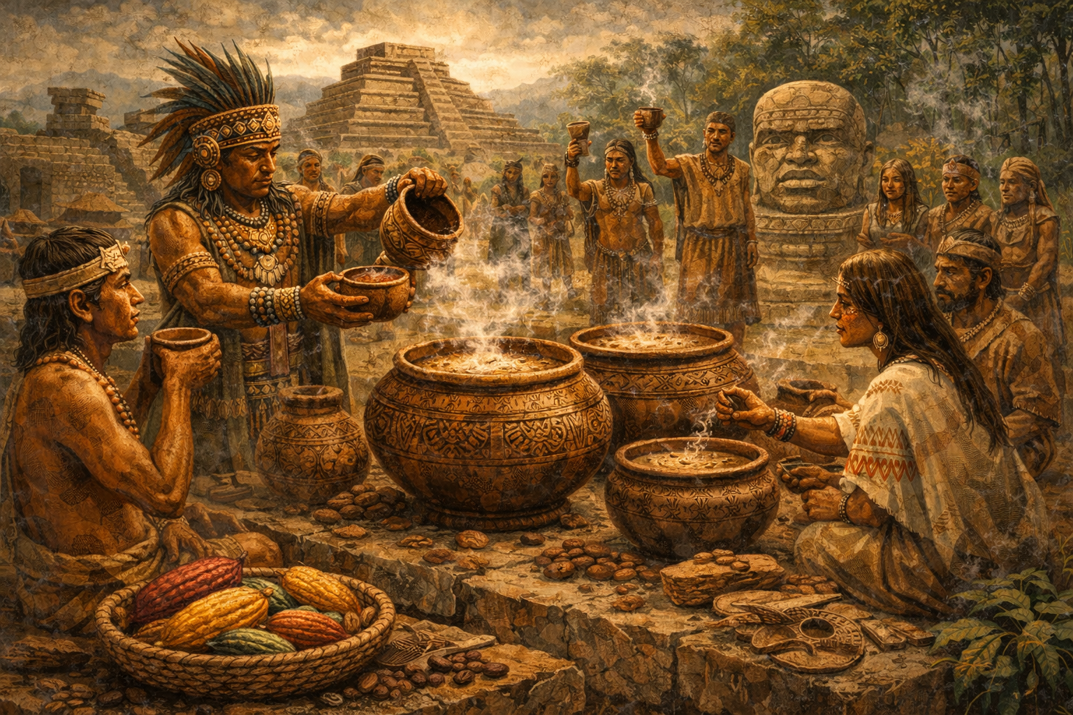 Posteriormente, los olmecas incorporaron el cacao en ceremonias colectivas. En sitios como San Lorenzo Tenochtitlán se han encontrado grandes vasijas con restos de cacao, lo que sugiere su consumo en rituales comunitarios.