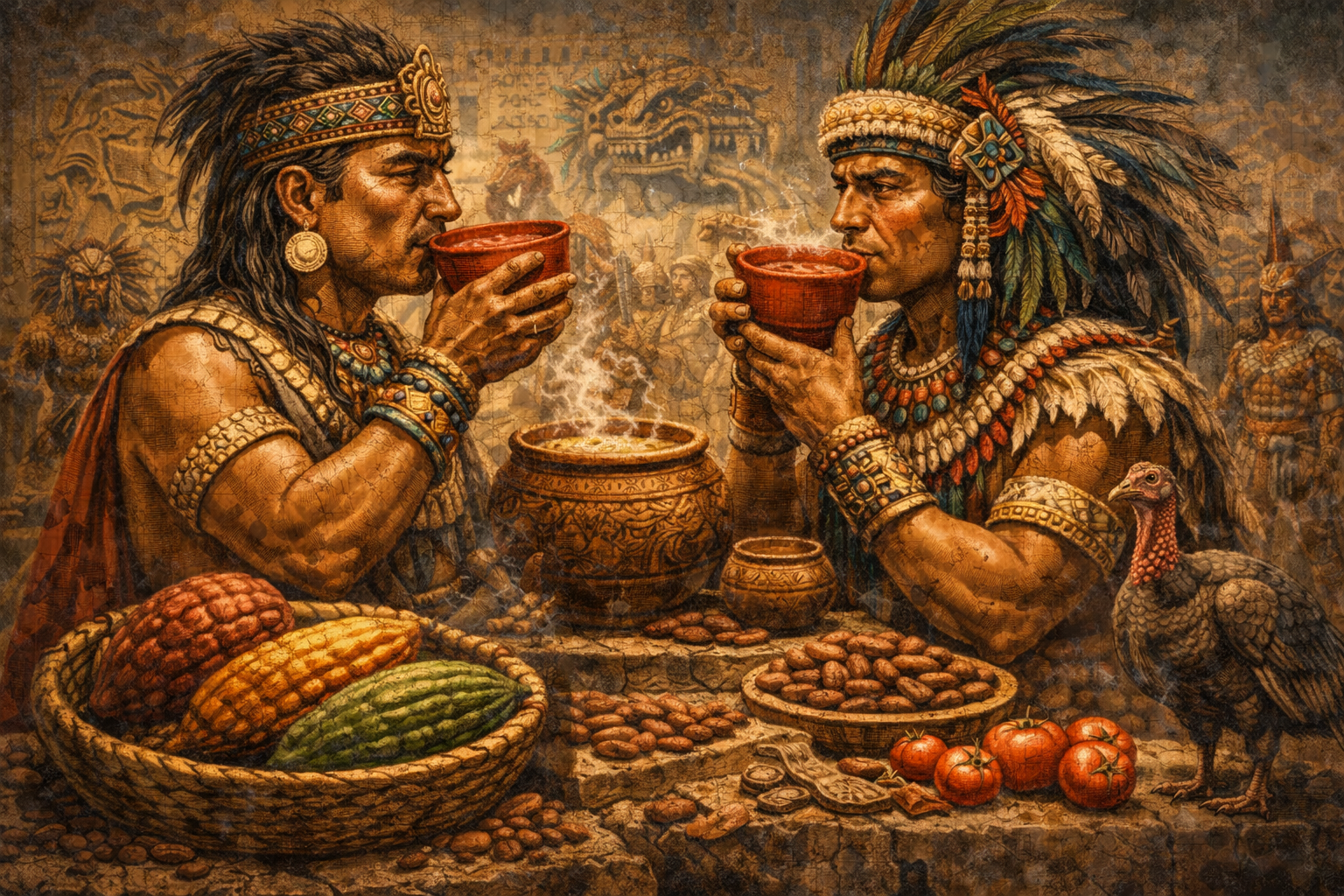 Los mexicas (aztecas) heredaron la tradición y consideraban al cacao un regalo del dios Quetzalcóatl. Era consumido principalmente por nobles, sacerdotes y guerreros, quienes lo bebían antes de las batallas por sus propiedades estimulantes.