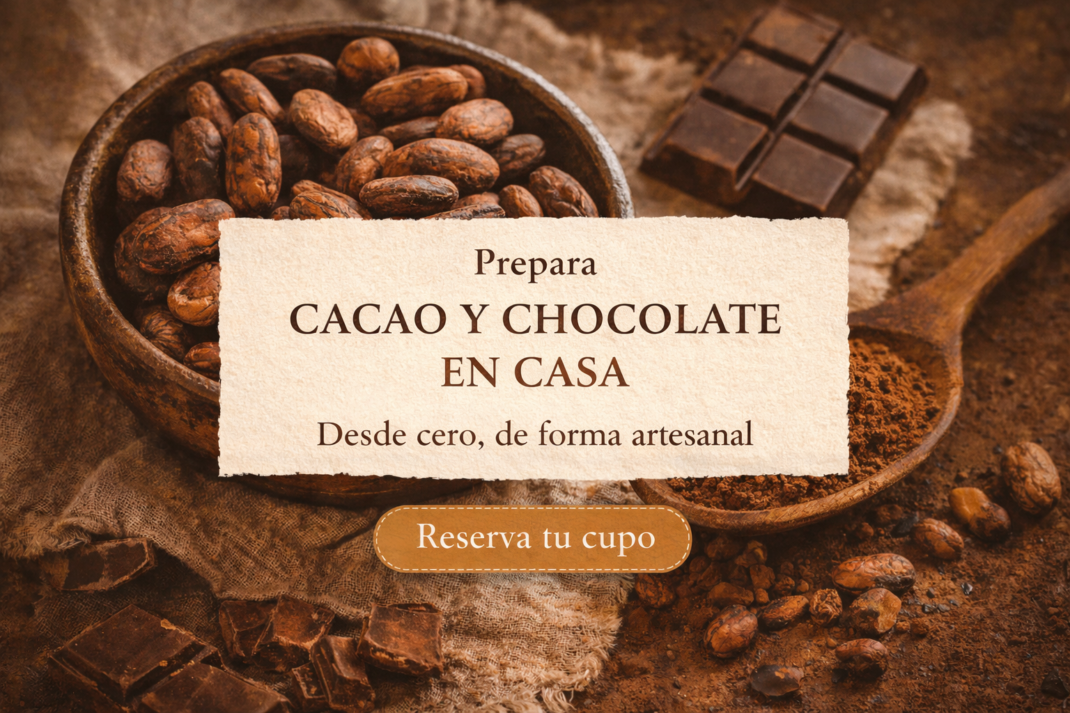 En el taller Cacao y Chocolate en Casa transformas historia y ciencia en recetas reales, rituales y sabor auténtico.
